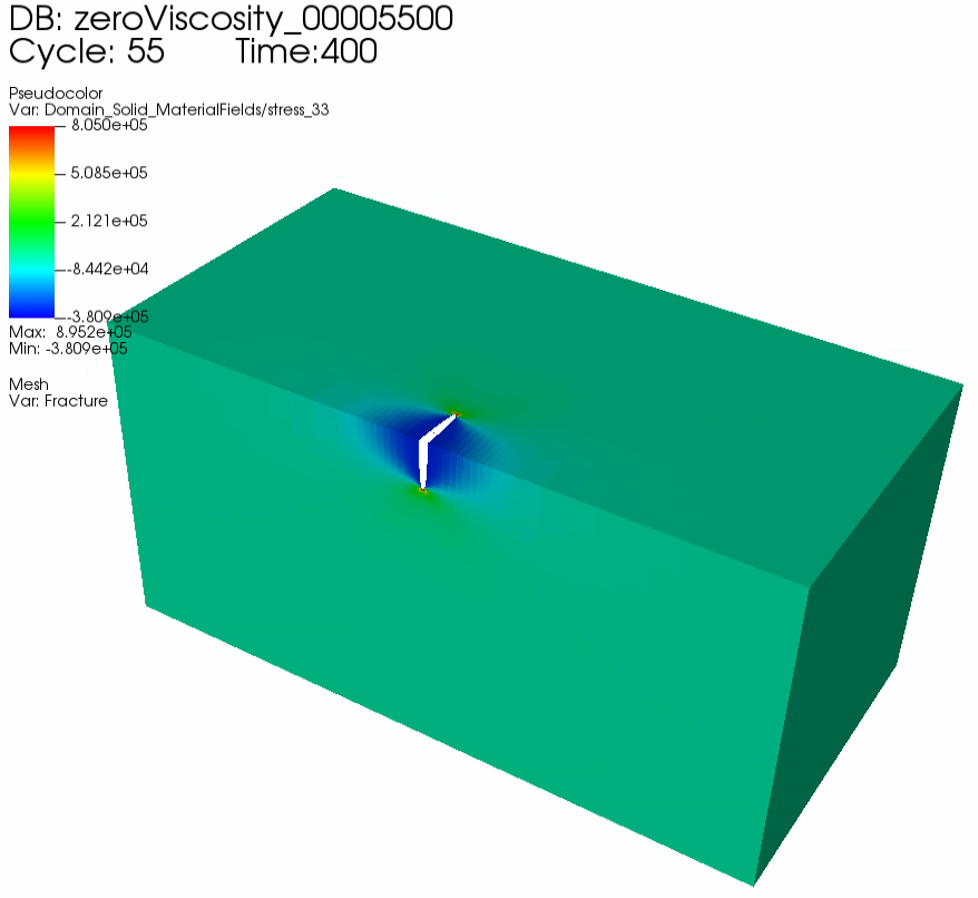 ) are specified. In addition, an impermeable fracture surface is assumed to eliminate the effect of fluid leak-off. This way, the GEOS simulations represent cases within the valid range of the toughness-storage-dominated assumptions.